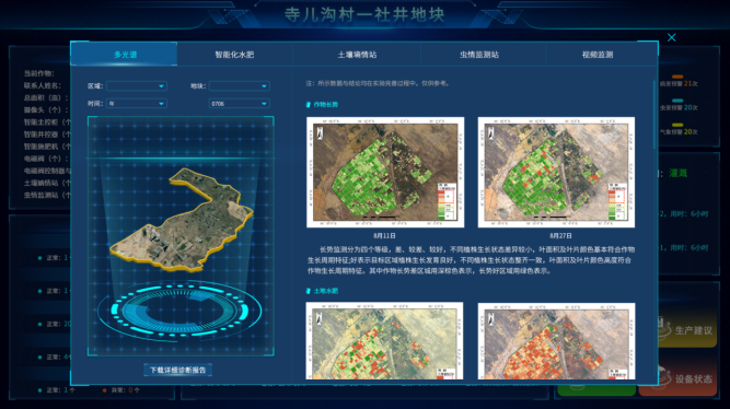 平台整合土壤墒情站92个、虫情监测站2个、气象站数据、多光谱监测等多种数据源,通过AI算力智能计算进行数据融合分析,为制种决策提供科学依据。